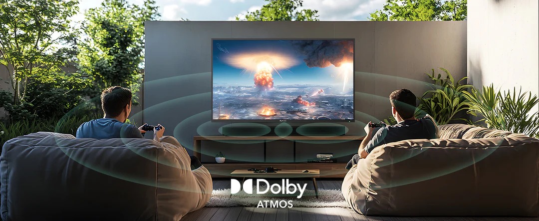 Med Helio QLED-teknik, 4K Ultra HD, Dolby Vision™, 120 Hz uppdateringsfrekvens och IP55-väderklassning får du bioliknande underhållning – direkt i trädgården, på terrassen eller vid poolen.