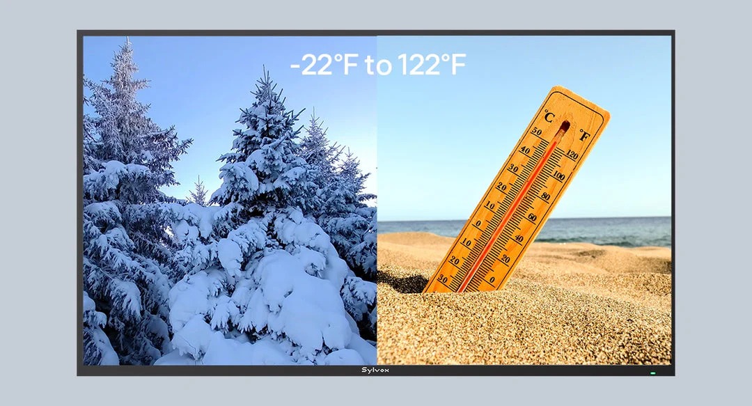 Denna utomhus-TV är den perfekta lösningen för utomhusbruk: tack vare IP55-klassning står den emot fukt, damm och värme. Den är väderbeständig, robust och pålitlig året runt.