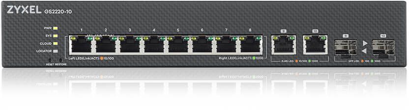Zyxel GS2220-10, 8-Port Gigabit, 2x1GbE RJ45/SFP, Standalone/Nebula